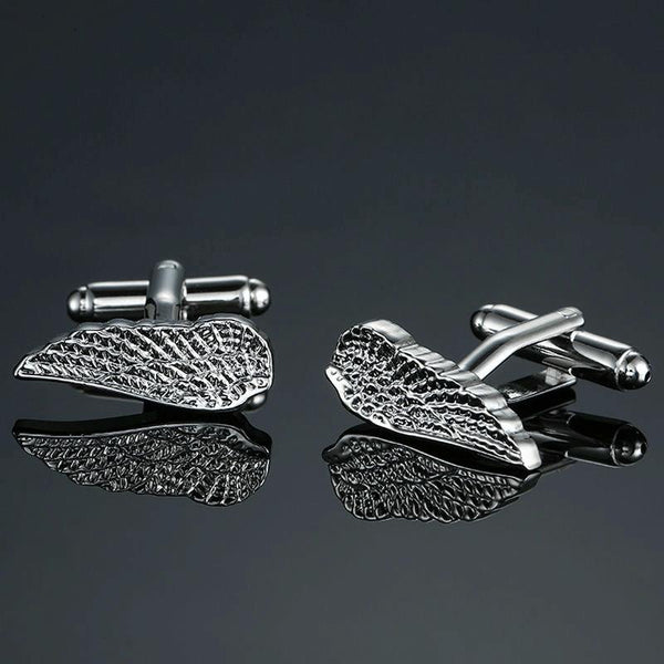 Men Clover Rose Pattern Cufflinks, Color: Silver Wings