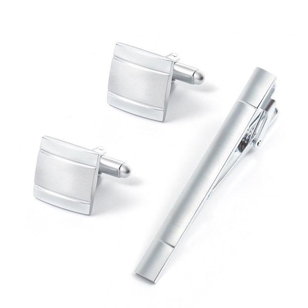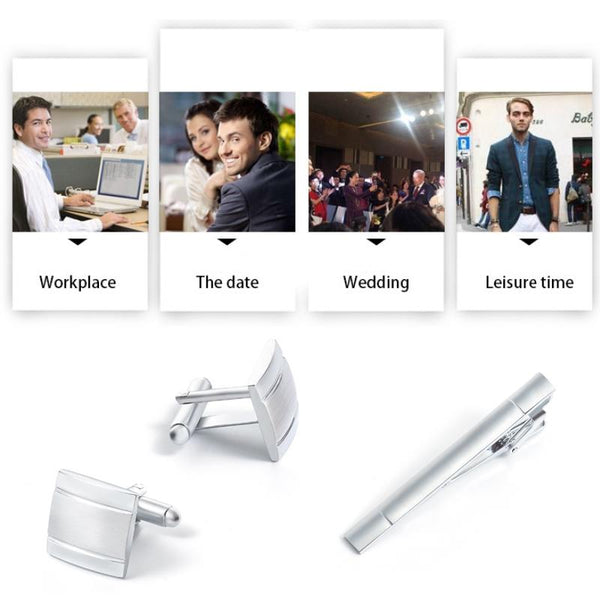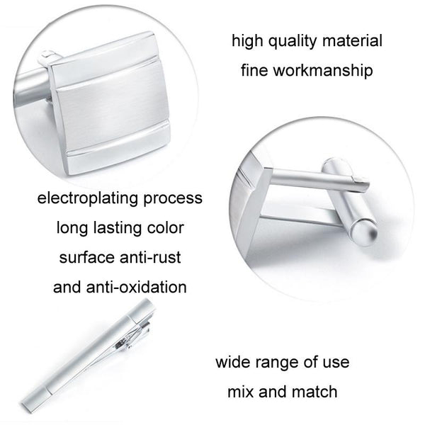 Men French Shirt Metal Cufflinks Collar Set(Silver)