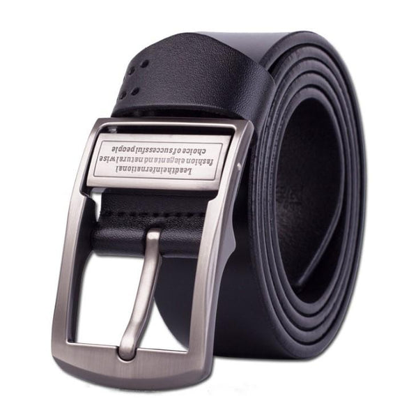 Men Pin Buckle Two-layer Cowhide Belt Pure Leather Pants Belt, Belt Length:115cm(black)