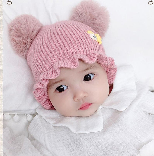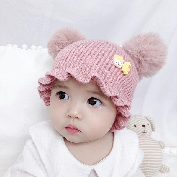 MZ8264 Cartoon Three-dimensional French Fries Duck Baby Skullcap Knitted Double Ball Woolen Hat, Size: Free Size(Pink)