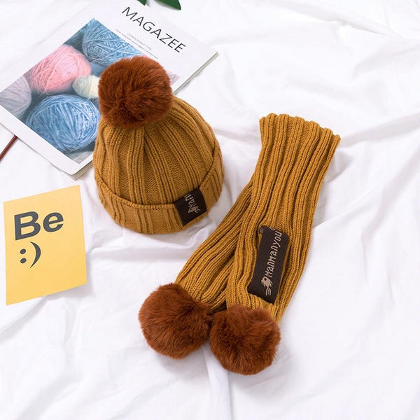 MZ8567 2 in 1 Children Knitted Hat Autumn And Winter Warm Baby Wool Hat + Children Scarf Neck Suit, Size: Free Size(Dark Yellow)