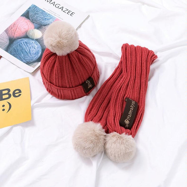 MZ8567 2 in 1 Children Knitted Hat Autumn And Winter Warm Baby Wool Hat + Children Scarf Neck Suit, Size: Free Size(Orange)