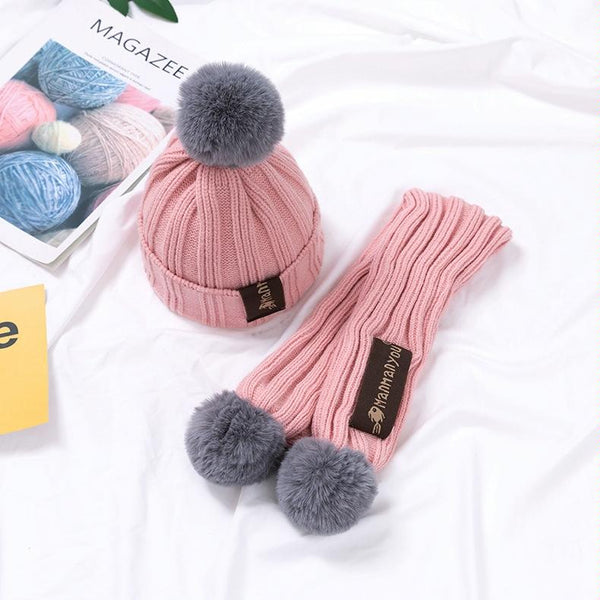 MZ8567 2 in 1 Children Knitted Hat Autumn And Winter Warm Baby Wool Hat + Children Scarf Neck Suit, Size: Free Size(Pink)