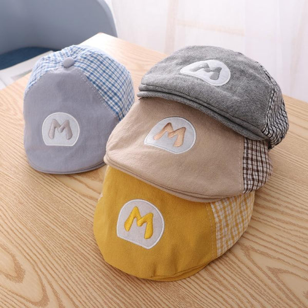 MZ9741 Embroidered Letter Lattice Hat Children Autumn Simple Beret, Size: Around 48cm(Gray)