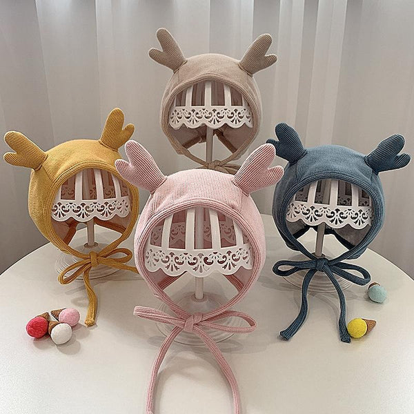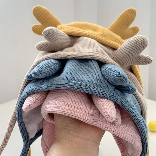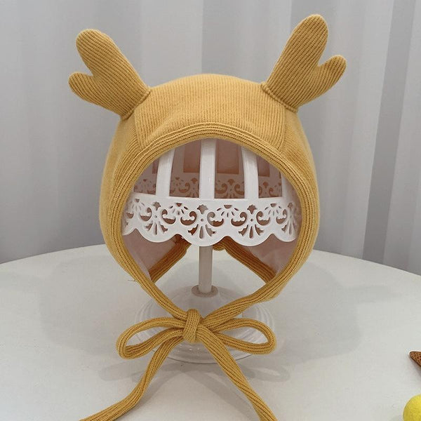 MZ9853 Baby Cartoon Animal Ears Shape Skullcap Cotton Keep Warm and Windproof Hat, Size: Suitable for 0-12 Months, Style:Antlers(Yellow)