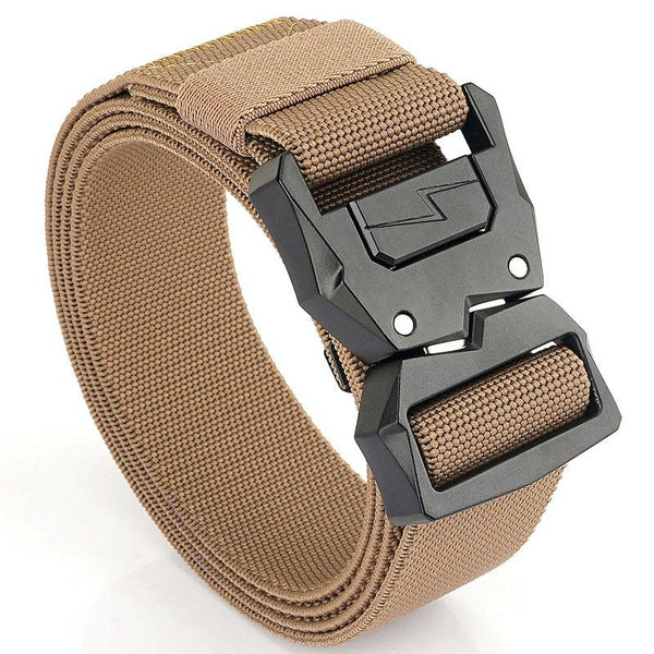 Outdoor Casual Lightning Buckle Men Elastic Belt, Length: 125cm(Dark Khaki)