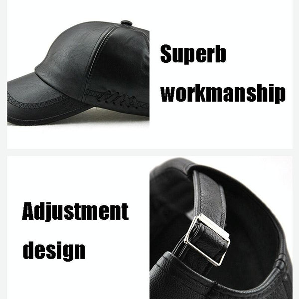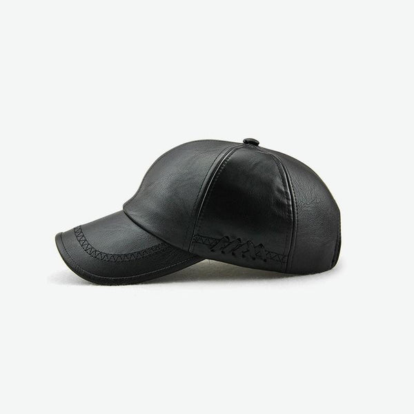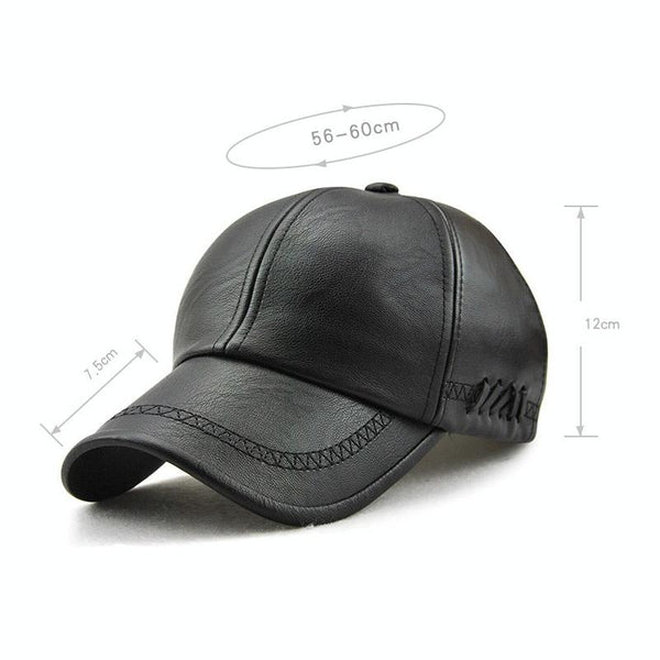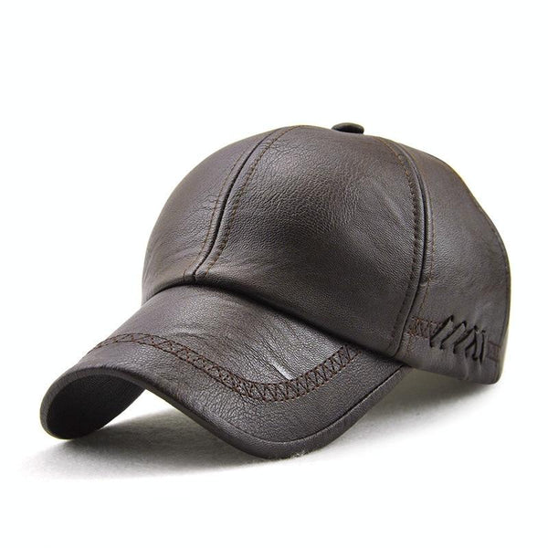 Outdoor Leisure Baseball Hat PU Leather Warm Peaked Cap, Size:Free Size(Dark Coffee)