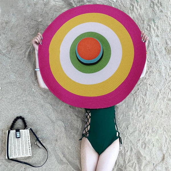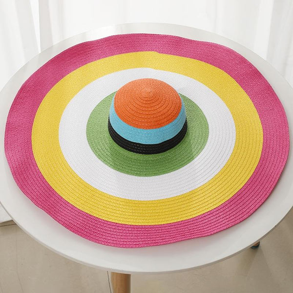 Oversized Brim Dome Rainbow Striped Beach Visor Hat, Size: 56-58cm(2)