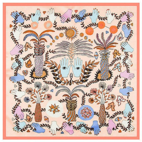 Palm Jungle Eye Pattern Ladies Simulation Silk Small Square Scarf, Size:60 x 60cm(Snow Bud)