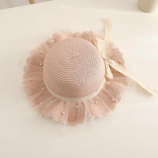 Parent-child Princess Style Beach Hat Straw Hat Adult 56-58cm(Khaki)