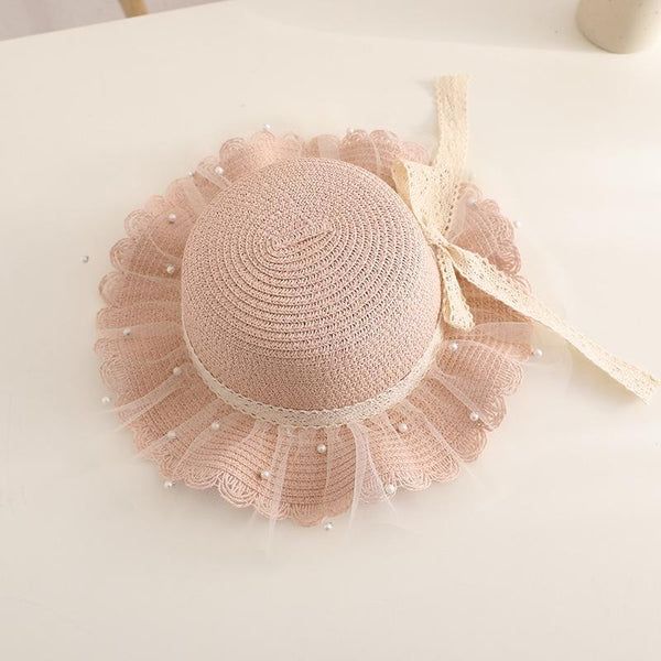 Parent-child Princess Style Beach Hat Straw Hat Child 52-54cm(Pink)
