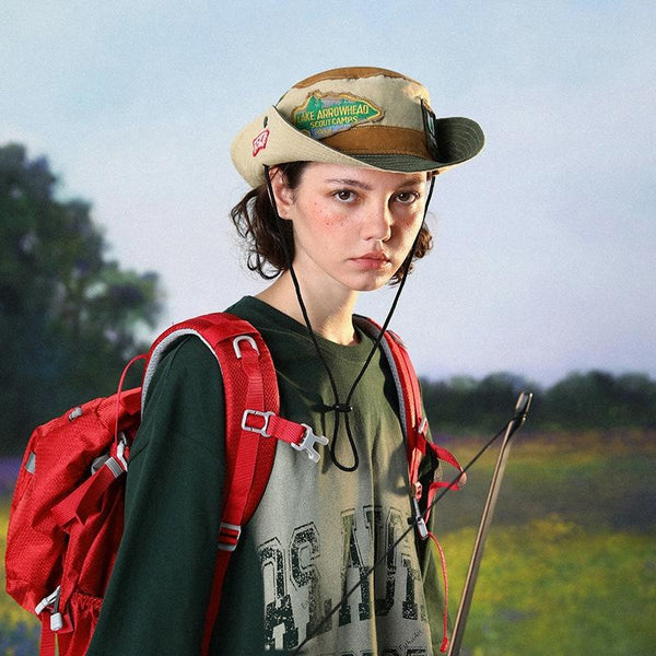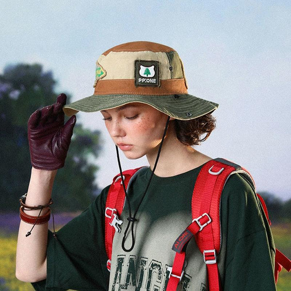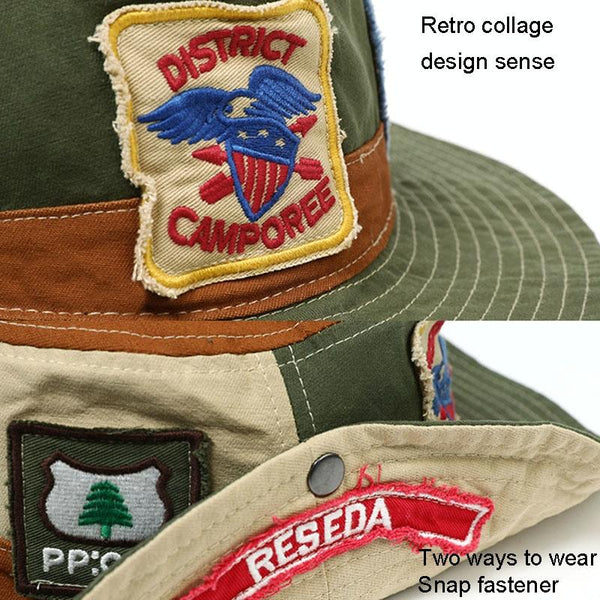 Retro Mountaineering Fisherman Hat Patching Sunscreen Hat Outdoor Cowboy Cap, Size: One Size 55-59cm(Brown Khaki+Army Green)