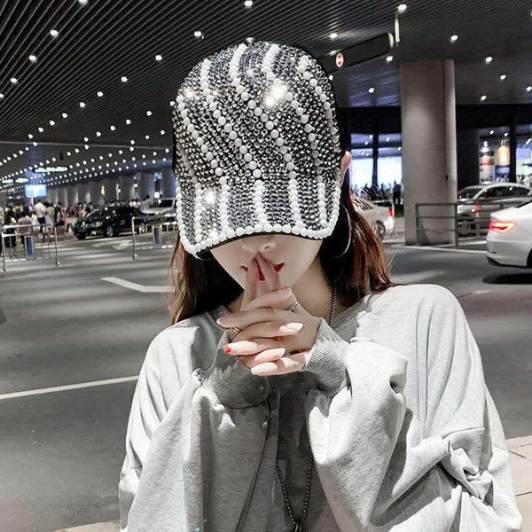 Rhinestone Personality Cap Women Spring And Summer Baseball Cap All-Match Hat, Size:M56-58cm(Gray)