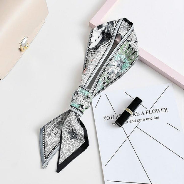 Spring and Summer Tarot Pattern Professional Chiffon Small Neckerchief Wild Scarf, Size:105 x 6.5cm(Moon)