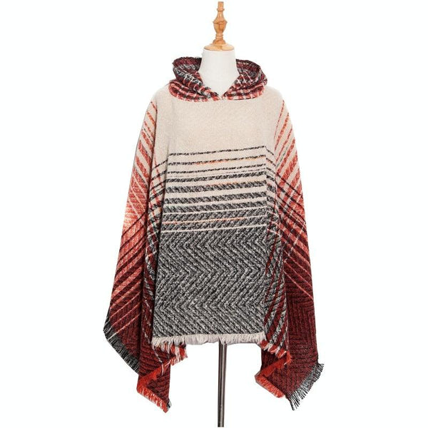Spring Autumn Winter Checkered Pattern Hooded Cloak Shawl Scarf, Length (CM): 135cm(DP4-01 Red)