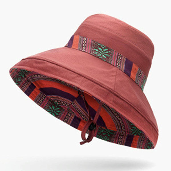 Summer Ladies National Style Double-sided Wearable Beach Hats Big Edge Sunhat, Size:One Size(Brick Red)