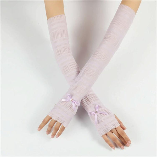 Summer Long Ice Silk Single Diamond Decoration Sun Protection Cuffs Sleeves, A Pair, Size:One Size(Purple)