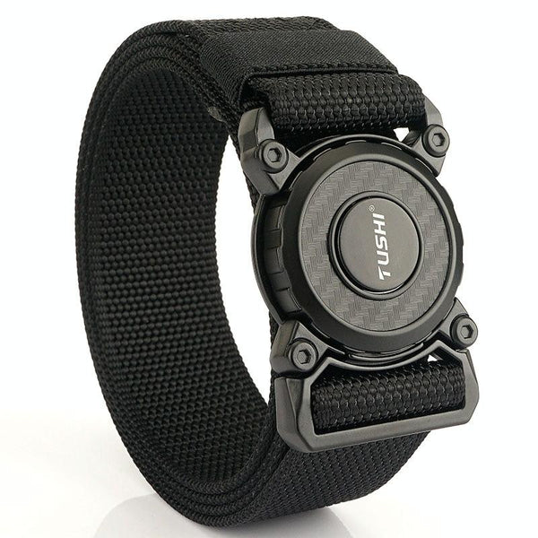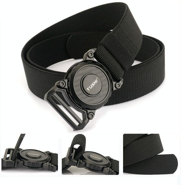 TUSHI 3.8cm Width Men Belts Army Style Quick Release Buckle Nylon Outdoor Man Casual Belt 125cm, Style: Overlock-Black