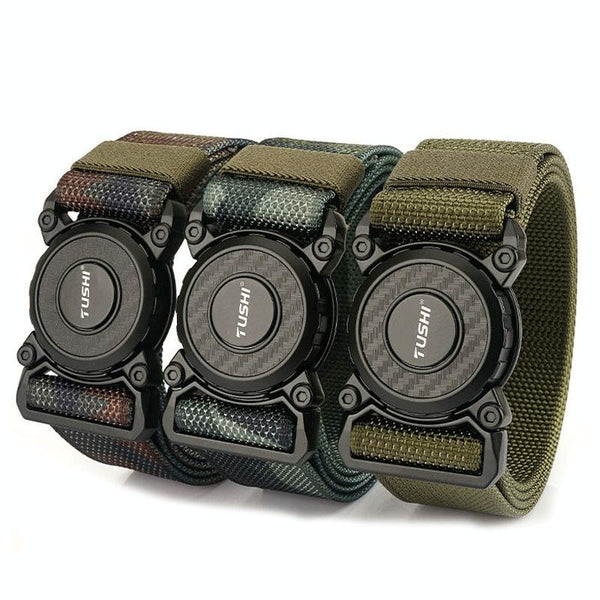 TUSHI 3.8cm Width Men Belts Army Style Quick Release Buckle Nylon Outdoor Man Casual Belt 125cm, Style: Overlock-Classic Camouflage