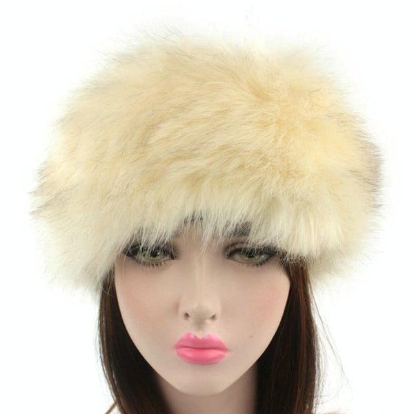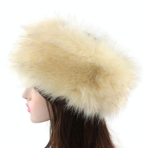 Unisex Winter Imitation Fox Fur Headband Bomber Hat, Size:L58-60cm(Black Tip on White)
