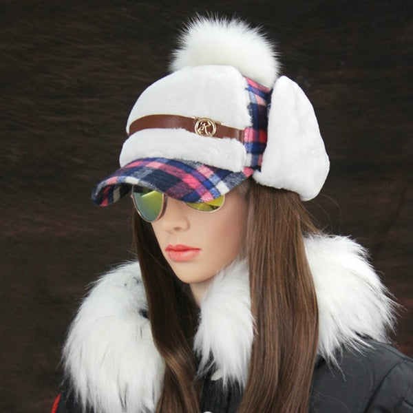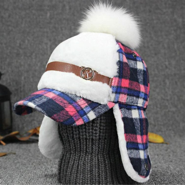 Winter Outdoor Warm Lattice Bomber Hat for Women, Hat Size:M56-58cm(Rose Red)