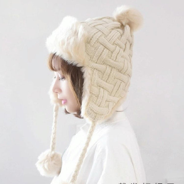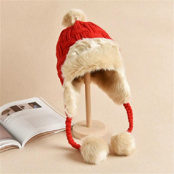 Winter Plus Velvet Knitted Wool Hat Bomber Cap Flight Hat, Size:M (56-58cm)(Red)