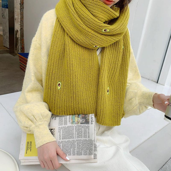 Winter Students All-Match Knitting Thickening Warm Small Fresh Scarf, Size:210 x 40cm(Avocado-Yellow-Green)