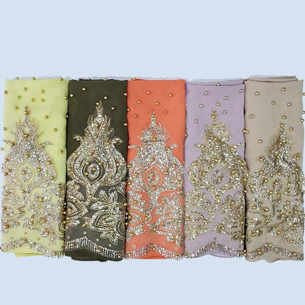 Women Chiffon Beaded Long Headscarf, Size:170cm(Light Green)