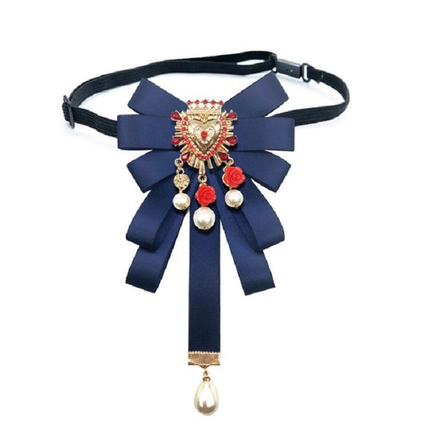 Women Court Style Heart-shaped Diamond Peal Bow Tie Brooch Clothing Accessories, Style:Tie Belts Version(Blue)