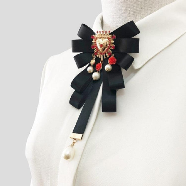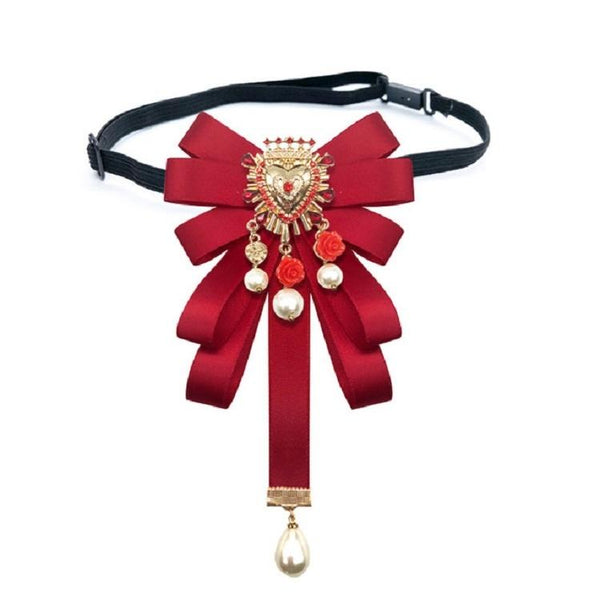 Women Court Style Heart-shaped Diamond Peal Bow Tie Brooch Clothing Accessories, Style:Tie Belts Version(Red)