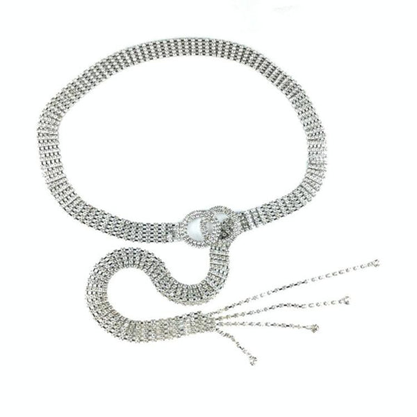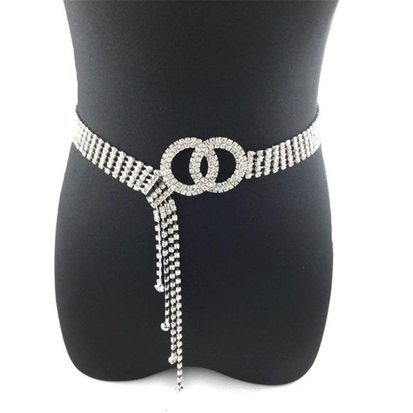 Women Double Loop Shape Diamond Belt Waist Chain, Length:120cm(Silver)