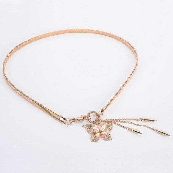 Women Thin Belt Metal Rhinestone Decorative Waist Chain, Length:68cm, Style:One Pearl Butterfly Pendant