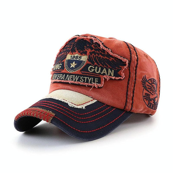 YANG GUAN Eagle Pattern Embroidered Washed Baseball Cap Sun Protection Cap, Size: 54cm(Crimson)