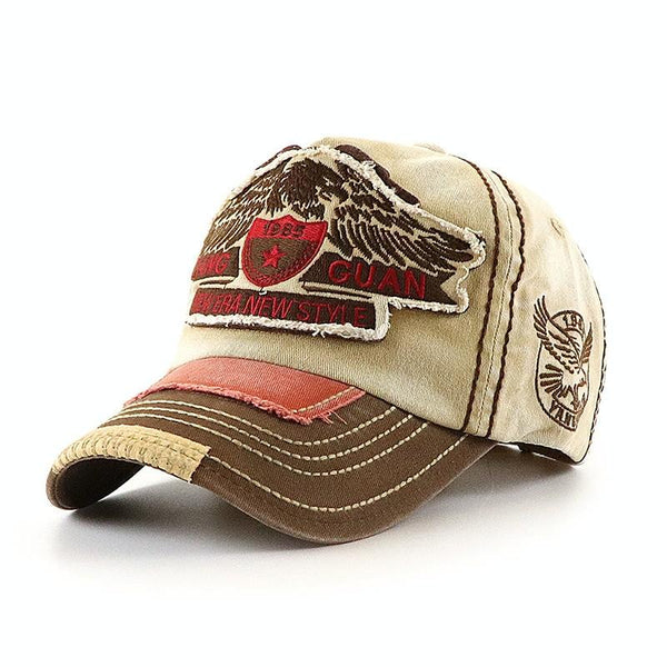 YANG GUAN Eagle Pattern Embroidered Washed Baseball Cap Sun Protection Cap, Size: 58cm(Medium Rice)