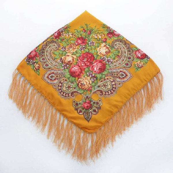 Yellow Ethnic Style Retro Tassel Square Scarf Flower Pattern Headscarf Scarf, Size:90 x 90cm