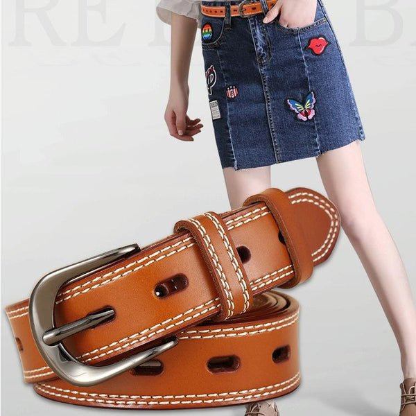 ZK--049 Double-stitched Hollow Pin Buckle Belt, Length: 110cm(White)