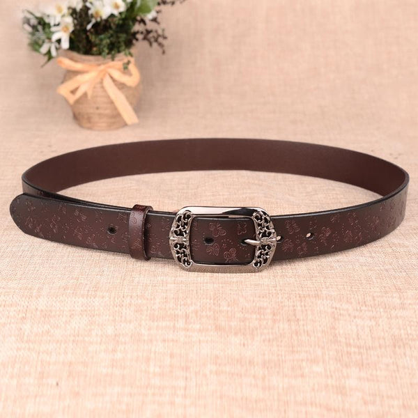 ZK--067 Retro Engraved Buckle Butterfly Print Pin Buckle Leather Belt, Length: 105cm(Black)