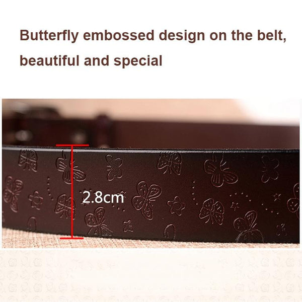ZK--067 Retro Engraved Buckle Butterfly Print Pin Buckle Leather Belt, Length: 110cm(White)