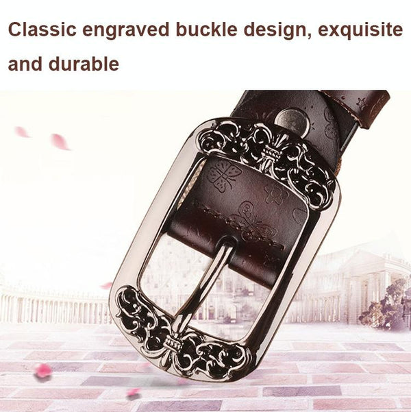 ZK--067 Retro Engraved Buckle Butterfly Print Pin Buckle Leather Belt, Length: 115cm(Brown)