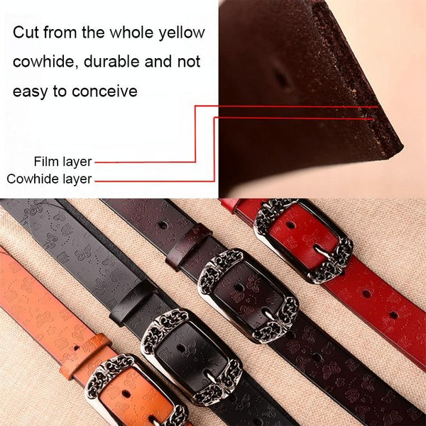 ZK--067 Retro Engraved Buckle Butterfly Print Pin Buckle Leather Belt, Length: 115cm(Coffee)