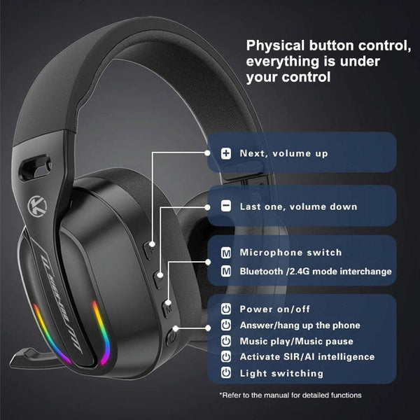 Bluetooth 5.4 Head-mounted RGB Wireless Bluetooth Gaming Headset(Black)