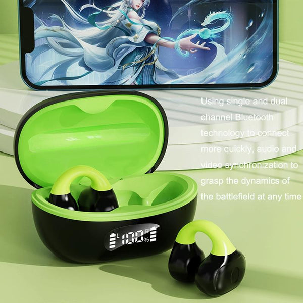 Business Binaural Digital Display Clip-On Bluetooth Earphone With Charging Compartment(Black+Green)