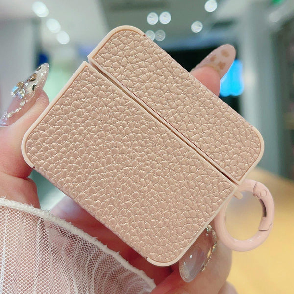 For AirPods 3 Litchi Texture Leather Sticker Earphones Protective Case(Rose Gold)