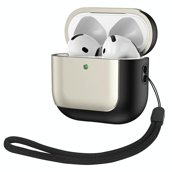 For AirPods 4 ANC Electroplating Leather Texture Wireless Earbuds Box Protective Case(Gold)