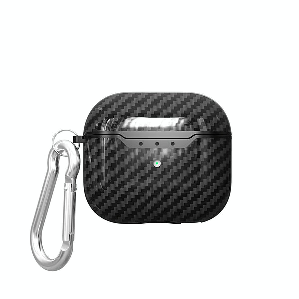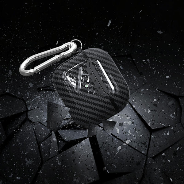For AirPods 4 Carbon Fiber Texture TPU Shockproof Protective Earphone Case with Hook(Black)