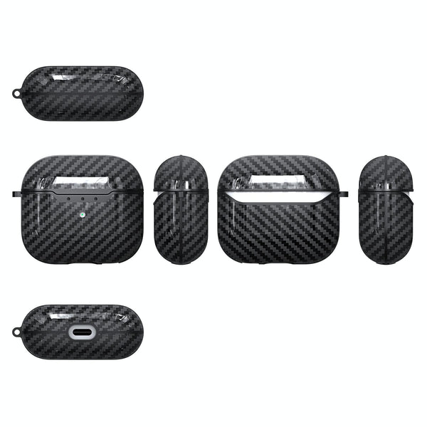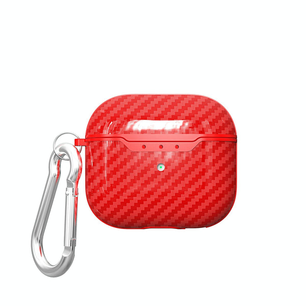 For AirPods 4 Carbon Fiber Texture TPU Shockproof Protective Earphone Case with Hook(Red)