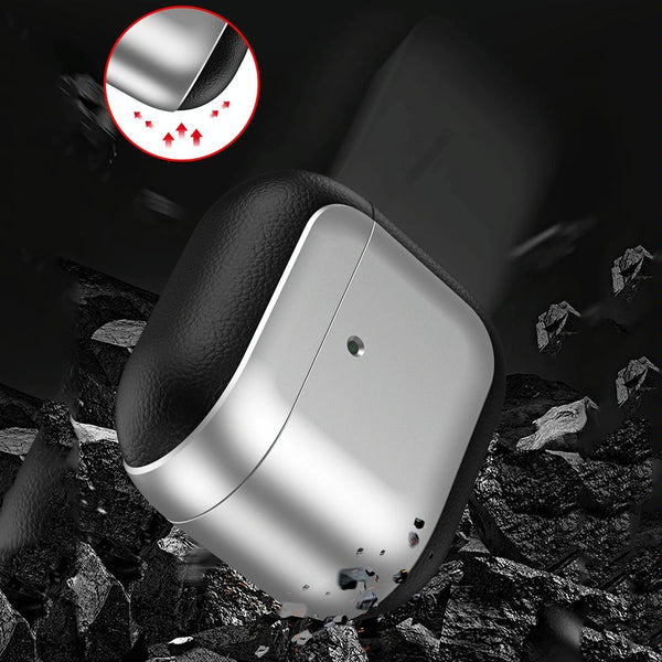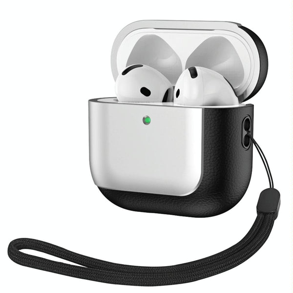 For AirPods 4 Electroplating Leather Texture Wireless Earbuds Box Protective Case(Silver)