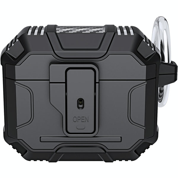 For AirPods 4 Non-slip TPU+PC Shockproof Earphones Case with Hook(Black)