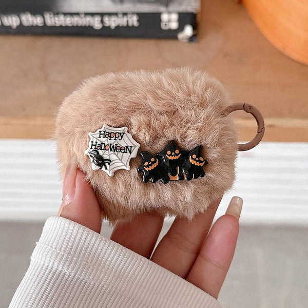 For AirPods Pro 2 / Pro Christmas Series Plush Earphone Protective Soft Case(Spider Web Pumpkin)
