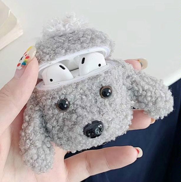 For Apple AirPods 1/2 Generation Universal Wireless Fuzzy Teddy Dog Bluetooth Headphone Protective Case(Gray)